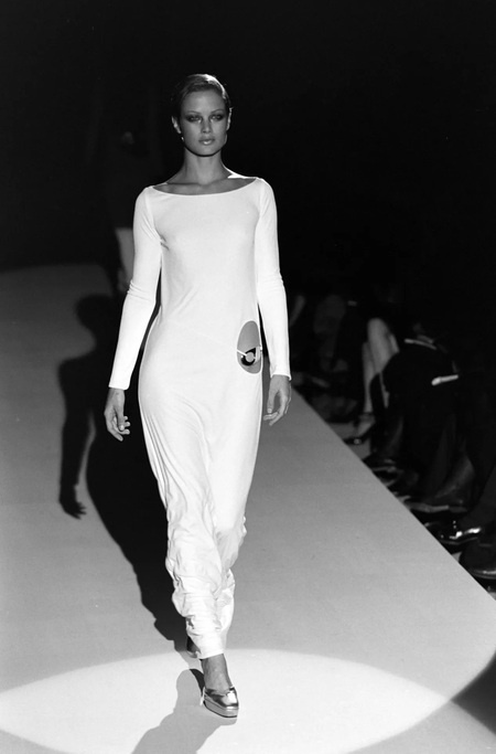 44. Модель Кэролин Мерфи. Показ модной одежды Gucci Осень, Милан 1996 г. 45. Модель Ясмин Гаури на показе Джанни Версаче весной в Милане, Италия, 1991 г.