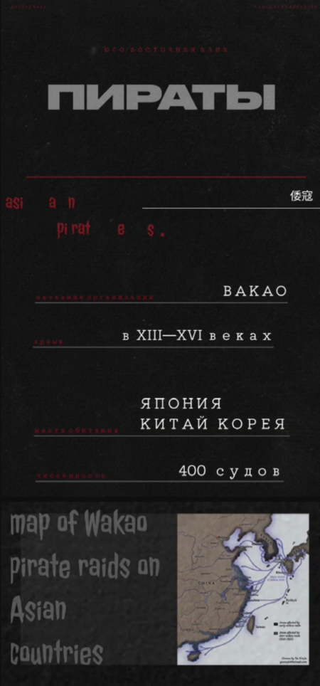 Западные историки часто называют «вако» японскими пиратами, но это упрощение, которое лишь поверхностно отражает сложную реальность. Исследования показывают, что слово «вако» имеет давнюю и противоречивую историю. В древности оно использовалось для обозначения любого некитайского «варвара», чужака, особенно выходца с Востока. Иногда термин даже имел уничижительный оттенок, означая «карлик». Любопытно, что жители Японского архипелага, несмотря на отсутствие огромных физических или культурных различий с китайцами, приняли это название на себя