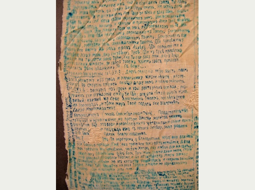 Сохранилась чёрная сатиновая безрукавка с фланелевой подкладкой, чья владелица осталась неизвестной. Уникальность этого предмета заключается в том, что между подкладкой и основной тканью тайно вшиты лоскуты полотна, исписанные синими чернилами. На них печатными буквами (чтобы скрыть почерк) нанесены тексты молитв на церковнославянском языке.