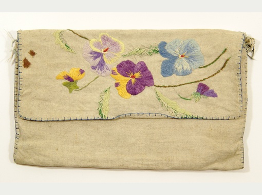 Никольская Ксения Ивановна. Сумочка-кошелек с вышивкой «Анютины глазки». 1938–1943 гг.