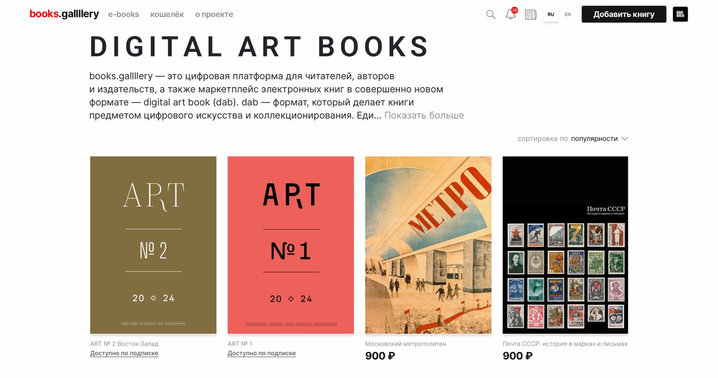 Музеи и культурные институции, коллекционеры и меценаты могут размещать собственные книжные издания на платформе books.gallllery.com (с платным или бесплатным доступом) и размещать произведения искусства из своих собраний на gallllery.com.