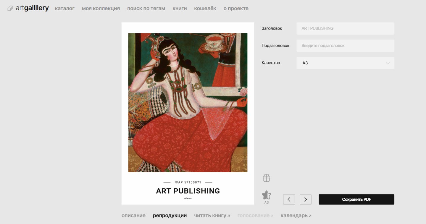 gallllery.com — это постоянно пополняемый каталог произведений искусства и дизайна — мировой визуальной культуры. Все изображения выложены в высоком качестве. Пользователи могут собирать свои цифровые коллекции, а также создавать на их основе физические объекты: плакаты и календари.
